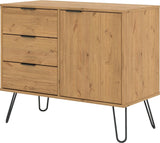Available in 4 finishes: Pine, Grey, Driftwood or White Hair pin legs A blend of tradition & industrial design Easy glide drawers |