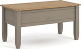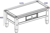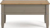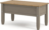 The centrepiece of any room, this generously sized antique and grey wax effect coffee table features solid shaped legs and complimenting optional gunmetal coloured stud detailing.