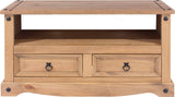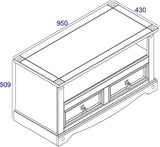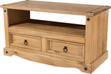 A practically sized flat screen TV unit in antique wax effect with equipment storage and 2 useful dovetailed drawers.