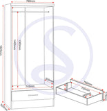 COMPOSITE BOARD,PLASTIC VENEER,MDF BACK PANEL,MDF DRAWER BASE,METAL HANDLE,METAL HINGES,METAL DRAWER RUNNERS,METAL HANGING RAIL,PLASTIC FEET