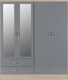 Utah 1 Door 1 Drawer Wardrobe - Grey Gloss/Light Oak Effect Veneer