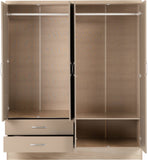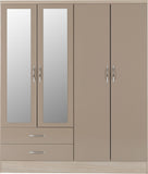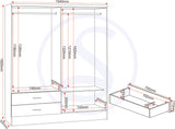 COMPOSITE BOARD,3D PAINT EFFECT,PLASTIC VENEER,MDF BACK PANEL,METAL HANDLE,METAL HINGES,METAL DRAWER RUNNERS,METAL HANGING RAIL,PLASTIC FEET,MIRRORED GLASS