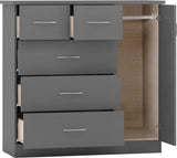 Utah 1 Door 1 Drawer Wardrobe - Grey Gloss/Light Oak Effect Veneer