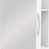 COMPOSITE BOARD FRAME,PLASTIC VENEER,MDF DRAWER BASE,MDF BACK PANEL,METAL HANDLE,METAL HINGES,METAL DRAWER RUNNERS,METAL HOOK,MIRRORED GLASS